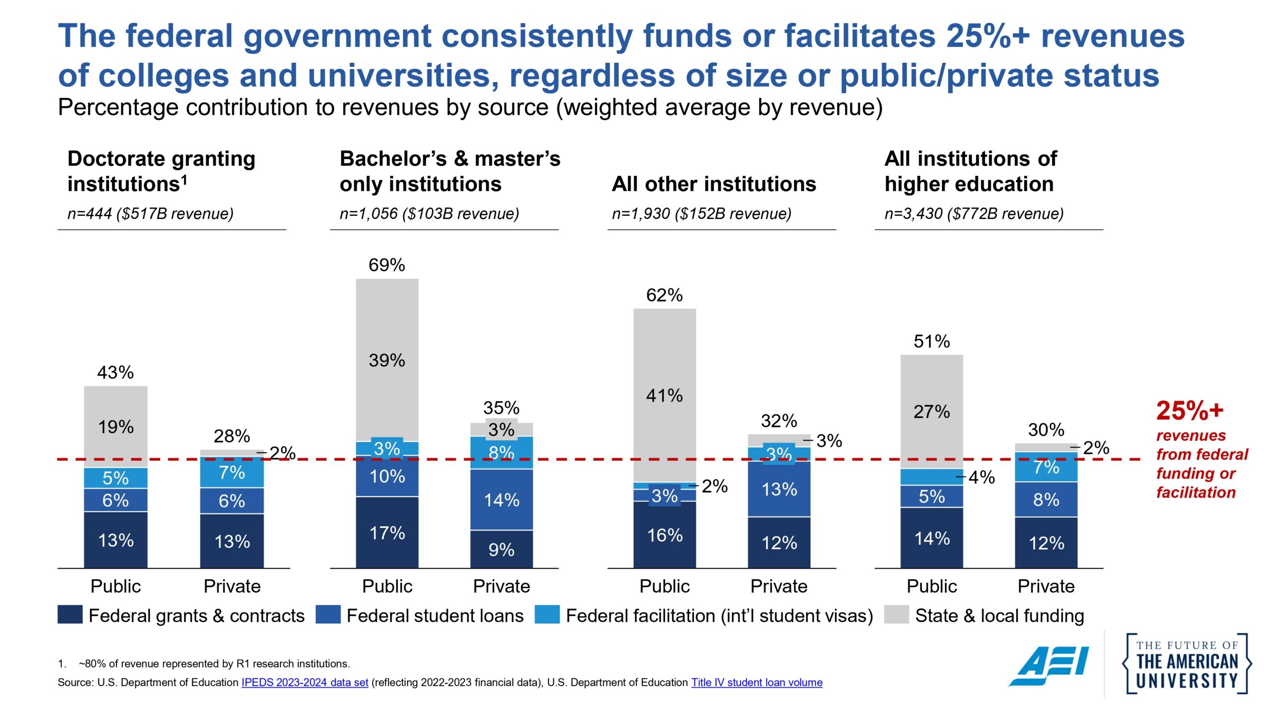 The Trump administration has simply highlighted the reality that even private universities in America are highly dependent on public support. Today, on average 25% of all university revenue either originates in or is facilitated by the federal government.